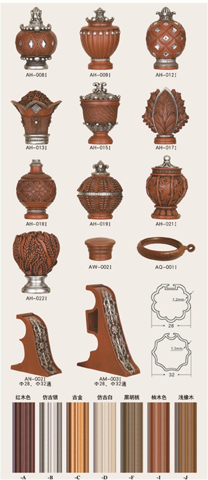 Hot selling delicate aluminum curtain rod pipe resin finials for home decoration Images |